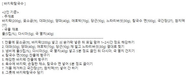 이재훈의 바지락칼국수와 바지락미나리무침 레시피 만드는 방법