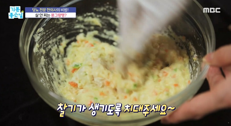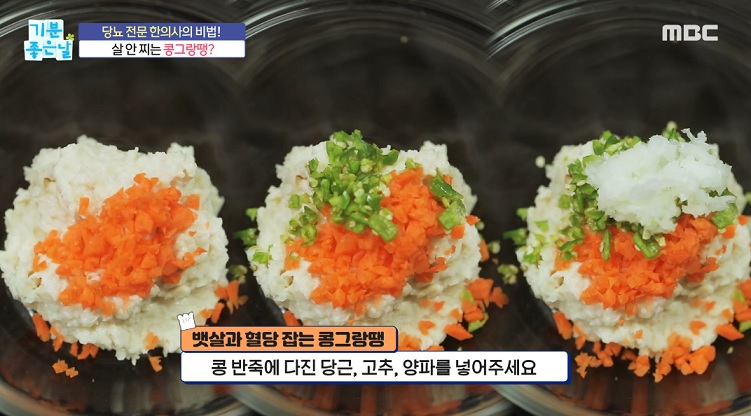 3. 콩 반죽에 다진 당근, 고추, 양파를 넣어준다.