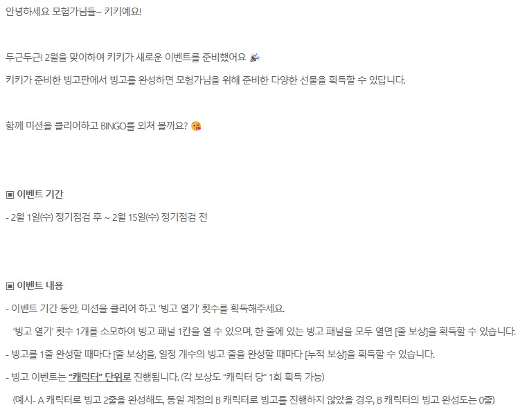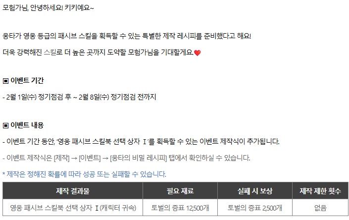 | 히트2 미미의 14일 스페셜 출석부, 길드 보스 도전 인게임이벤트 (0) | 2023.02.01 |