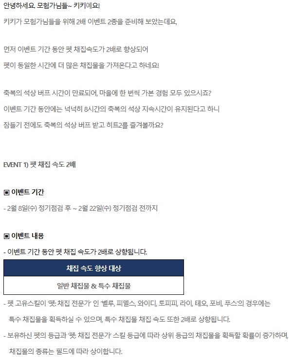 히트2 펫 채집 속도 2배 & 축복의 석상 버프 유지 시간 2배