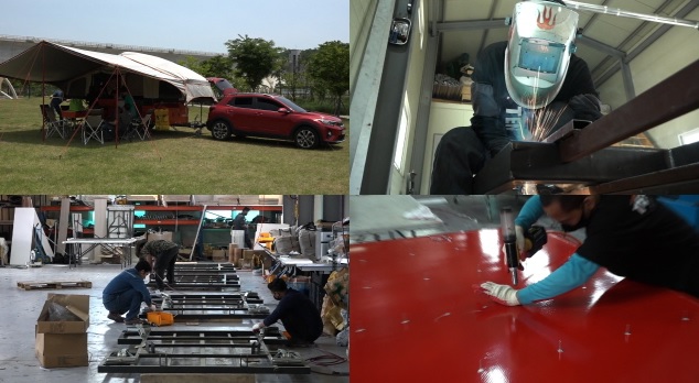경기도 파주의 트레일러 공장은 한달에 약 45대의 폴딩 트레일러를 만들어 낸다. 잦은 야간작업을 견뎌내며 만들어 내고 있다.
