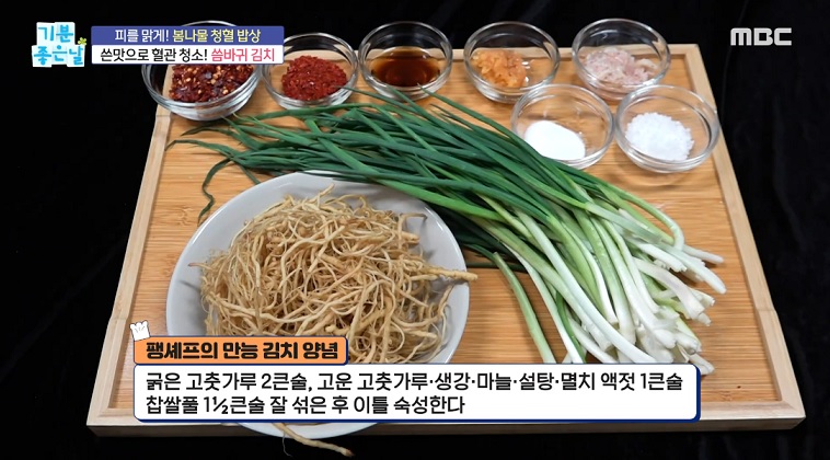 기분좋은날 팽현숙 씀바귀 쪽파김치 포두부 과자 만드는 방법