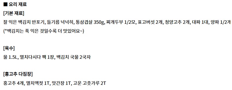 (재료가 잠길만큼 부어주고, 특히 백김치 국물을 넣어줘야 더 맛있다.)