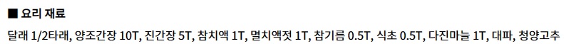 1. 양조간장 10t, 진간장 5t, 참치액 1t, 멸치액젓 1t, 참기름 0.5t, 식초 0.5t, 다진마늘1t, 다진대파, 다진청양고추를 넣어 만능장을 만든다.