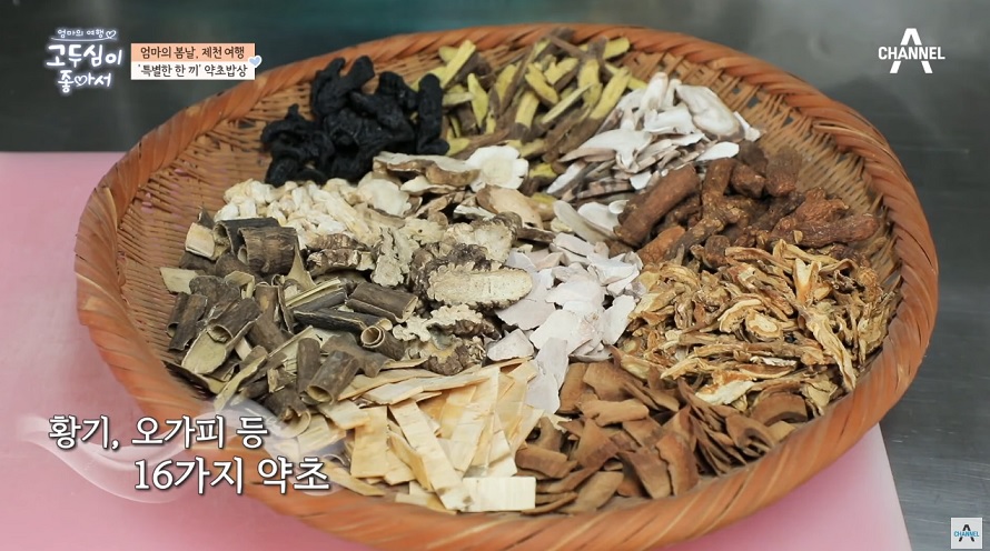 제천 여행 편에서 약초 관련된 음식이 소개가 되었었습니다. 16가지 약재가 어우러진 음식.