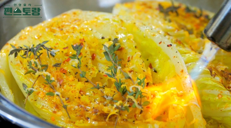 4. 알배기 배추의 수분이 올라오면 버터 한 조각을 넣고 5분간 굽는다.