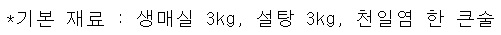 1. 매실 3kg은 깨끗이 씻어 말리고 이쑤시개로 꼭지를 따준다.