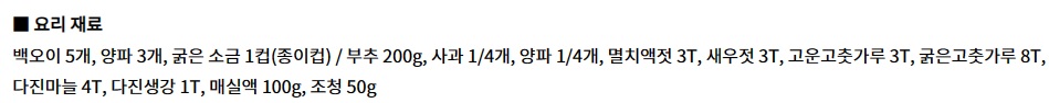 (설탕을 넣으면 소박이가 빨리 물러지고, 매실액이 양념을 잘 달라붙게 하는 역할을 한다.)