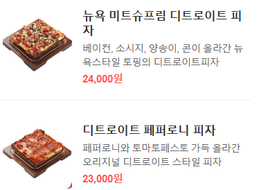 불란서 수비드스테이크 디트로이트 피자 34000원