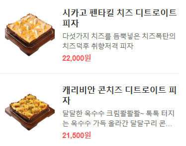 홍콩 마라폭포꿔바로우 디트로이트 피자 33,500원