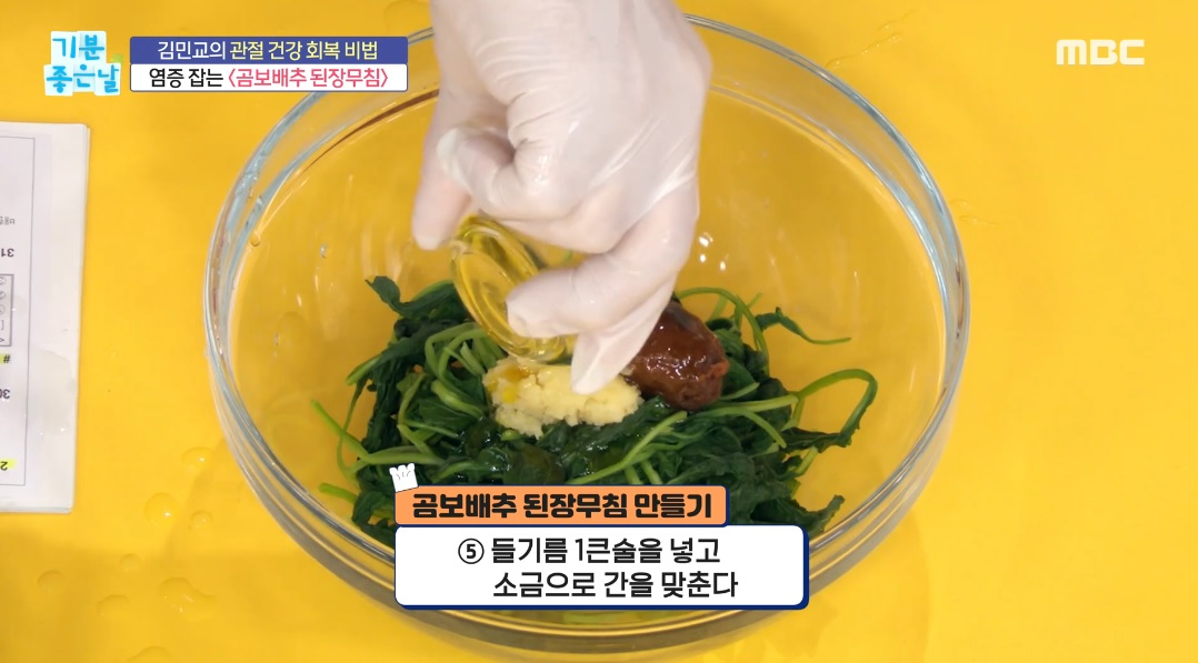 5. 들기름 1큰술을 넣고 소금으로 간을 맞춘다.