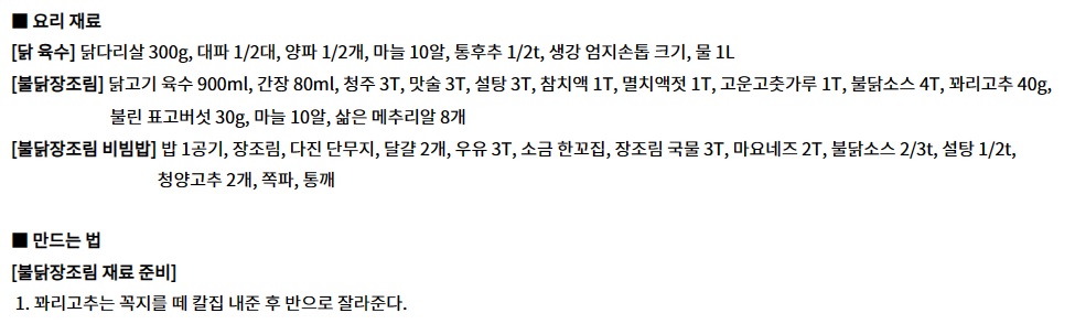 편스토랑 이찬원 불닭장조림 비빔밥 칼국수 면 만들기 만드는 방법 레시피