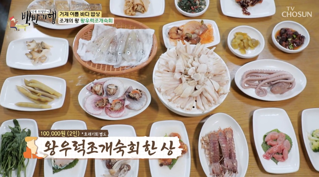 허영만의 백반기행 왕우럭조개숙회 한상 해산물 한 상 장어내장수육 미더덕장아찌 장어내장수육 갯가재