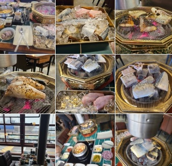 + 대표메뉴 먹었는데 둘이 84000원인데 생선이 꽁치, 고등어, 임연수, 메로, 산낙지 4가지를 미니화로에서 직접 구워 주세요. 양도 어마어마한데..... + 숯불에 구워주는 생선구이가 정말 맛있어요. 저염으로 소스에 찍어먹는 스타일이라 내 입맛에 맞춰서 먹을 수 있고 바다도 볼 수 있으니 특별.......... + 오이도까지 왔으니깐 특별한 메뉴로 쏜다는 친구랑 같이 시그니처 세트 메뉴주문했는데..와우~~ 메뉴 완전 최고! 숯불에 잘 구워주시는 생선구이..... |