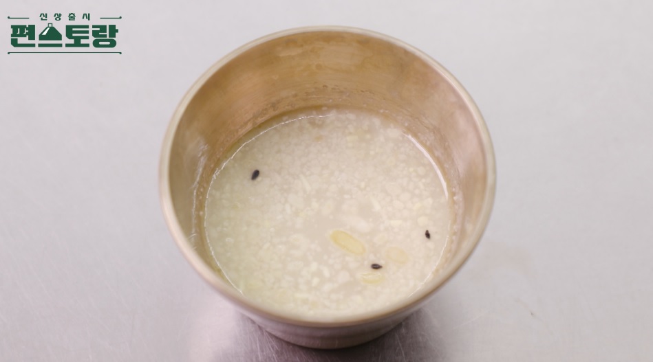 5. 잣죽에 아기 소금 한 꼬집을 뿌려준다.