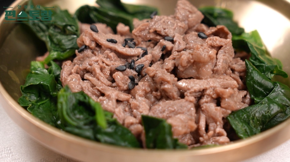 4. 그릇에 시금치를 담고 불고기를 올려주면 완성
