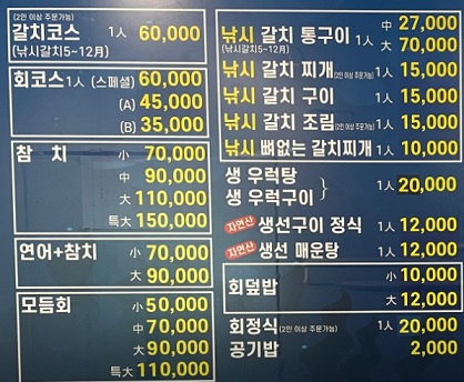 메뉴 및 가격