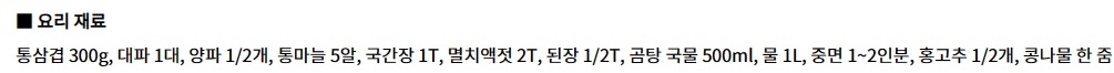 1. 곰탕 국물 500ml에 된장 1/2t를 풀어둔다.