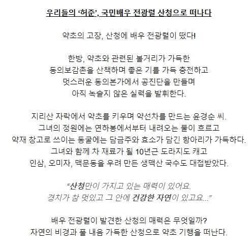 한국기행 기운차게, 한 방 오죽 숲의 삼라만상, 전광렬의 동의보감