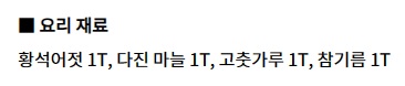 1. 볼에 황석어젓1t, 다진마늘 1t, 고춧가루1t, 참기름 1t를 넣고 잘 섞어주면 완성