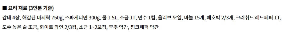 (조개의 짠맛이 있어서 간을 많이 하지 않아도 돼요)