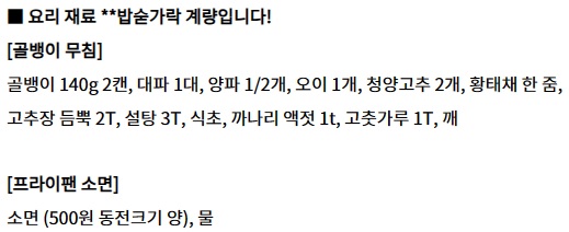+ 황태채는 골뱅이 국물까지 다 넣으면 짤 수 있으므로 한번 꾹 짜내주세요