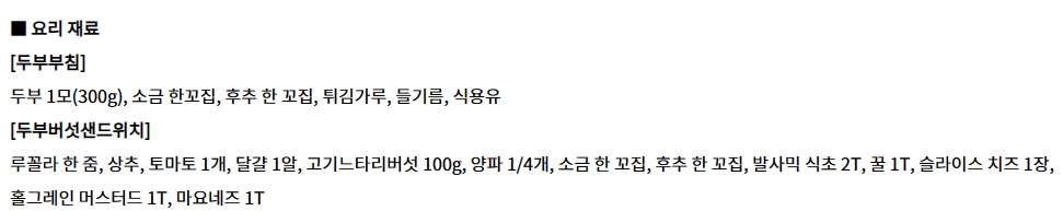 두부버벗샌드위치 재료 준비