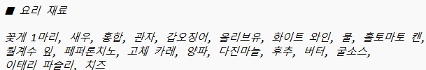 3. 2에 홍합, 새우살, 관자, 갑오징어, 꽃게, 화이트 와인 1/2병, 물 약간을 넣은 뒤 뚜껑을 닫고 끓인다.