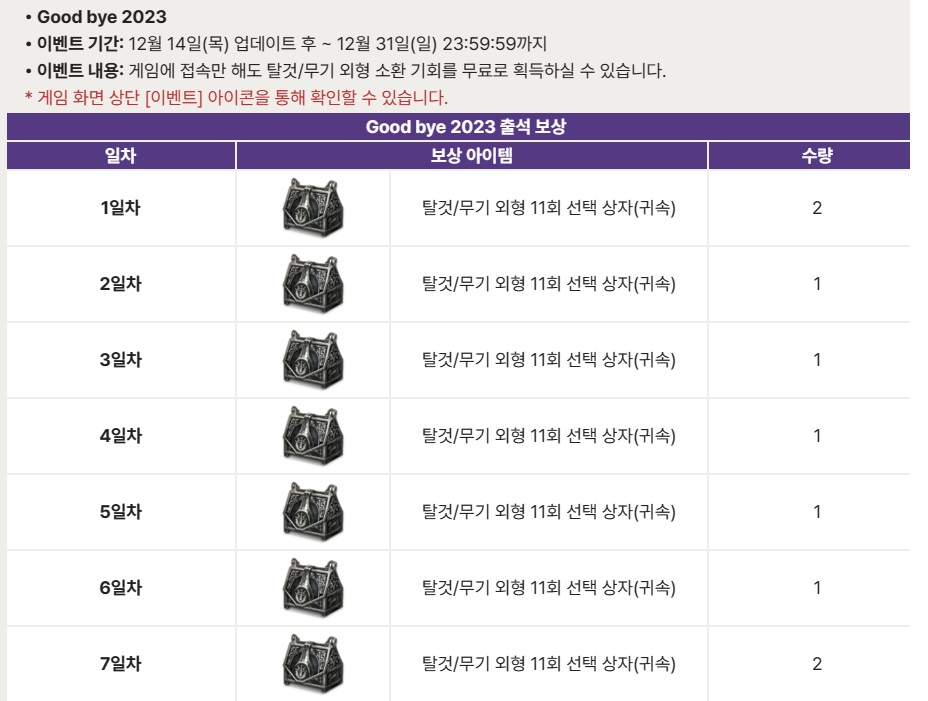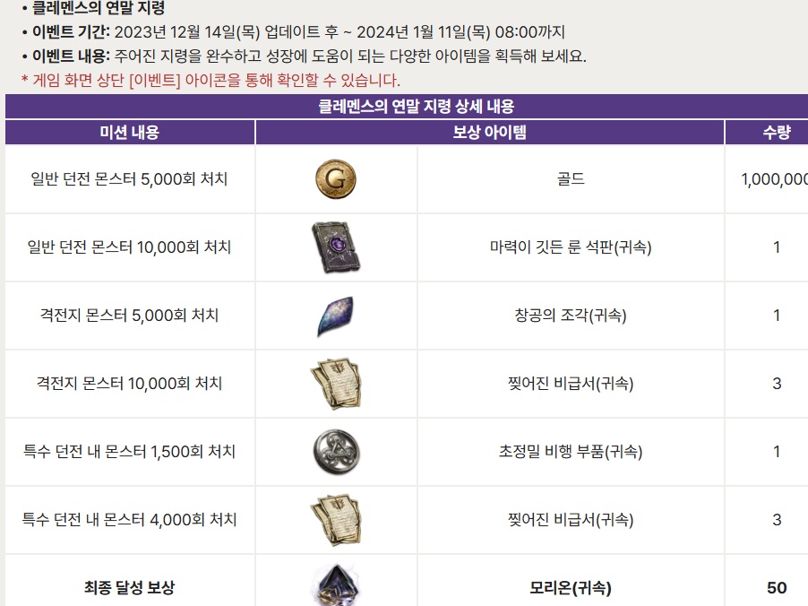 | 히트2 엘테라의 크리스마스 축제 이벤트 3종, 웅타클로스의 소원 접수 이벤트 4종! (0) | 2023.12.21 |