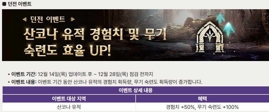해당 던전에서 경험치 및 무기 숙련도를 대폭 올리는 이벤트
